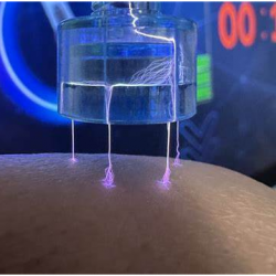 Cold Atmospheric Plasma (CAP) uses ionised Argon gas to sterilise and energise the skin, reduce inflammation, and kill 99.9% of bacteria. It supports treatment for TSW, ulcers, eczema, rosacea, psoriasis, acne, and more.