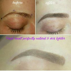 The best part about this technique is that there is limited down time. There is some slight redness and swelling immediately afterwards for some. It will only last up to 24hours. The brows will fade about 30% there may be some slight flaking of skin as it heals.